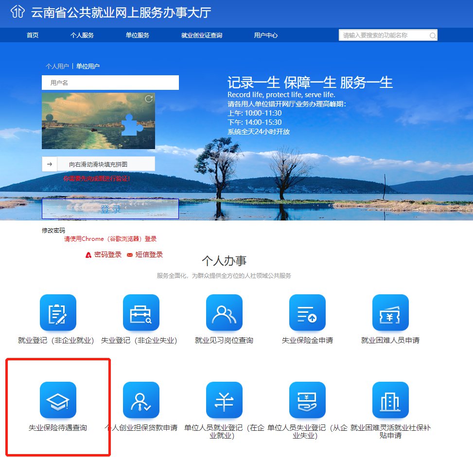 查詢平臺(tái)一:云南省公共就業(yè)服務(wù)網(wǎng)上辦事大廳