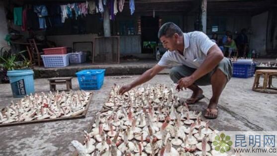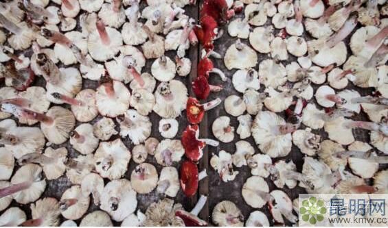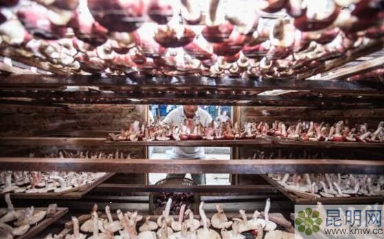 菌子在陽光和風能下慢慢散失水分,鮮美的味道開始一點點凝聚,在菌子脫水的過程中會散發(fā)出大量的鳥苷酸鹽,有強烈的鮮味,因此只有干燥之后,大紅菌才可以稱得上是真正的大紅菌。