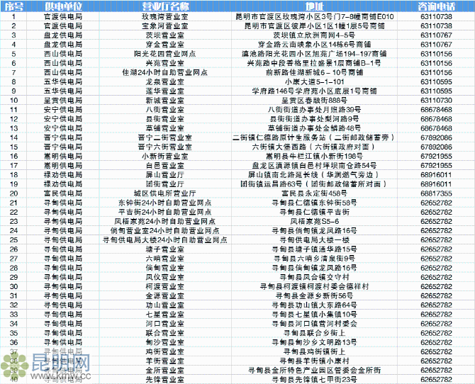 9月1日起 昆明供電局40個營業(yè)網(wǎng)點關(guān)閉