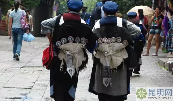 披星戴月服青年女性的色彩多偏重于明快、艷麗的色調,中老年女性的色彩則多采用青、黑等色的面料,顯得莊重素雅。關于披肩上綴著的七個皮質小圓牌和兩個大圓牌,一說是象征星月,二說上方下圓的羊皮是摹仿青蛙的形狀剪裁,而綴在背面的圓盤納西人稱為“巴妙”,意為“青蛙的眼睛”,納西族自古將青蛙視為智慧之神,能解人危難,因此那些圓形圖案代表青蛙的眼睛,是一種青蛙圖騰崇拜的歷史遺痕。