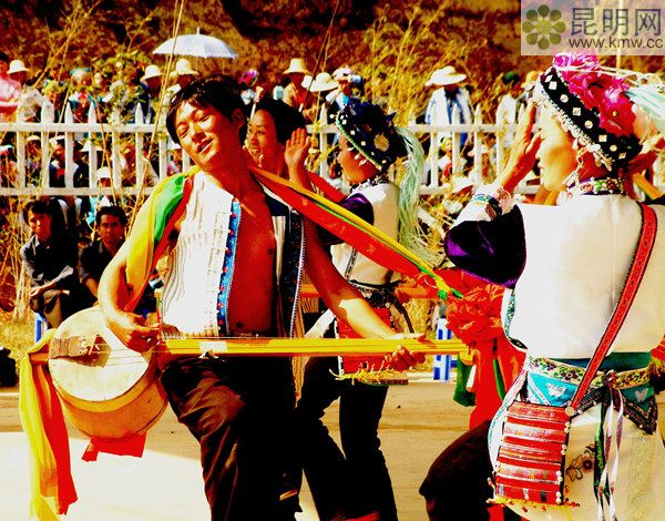 阿細跳月是彝族阿細人最具代表性的民族民間舞蹈,阿細跳月阿細語稱“嘎斯比”,即“歡樂跳”之意,因多在月光篝火旁起舞,故名曰“阿細跳月”。阿細跳月也稱“阿西跳月”、“跳樂”。自稱“阿細”、“撒尼”的彝族民間傳統舞蹈。它發源于云南省彌勒市西山阿細人聚集區,流行于云南彌勒、石林、瀘西等地。青年男女社交娛樂形式。男舞者彈大三弦或吹笛子,女子合著節拍與男對舞。或者牽手圍圈,左右擺動,拍掌踹腳,旋轉而舞。 彝族撒尼人和阿細人的民間舞蹈之一。流行于云南彝族地區。主要動作有三步一蹦跳、拍掌、跳轉等。