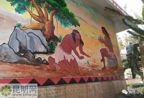 壁畫內(nèi)容豐富,畫上有古時(shí)佤族先民的生活、祭祀、村寨等圖案,還有現(xiàn)代佤族人民的耕種、戀愛、制作木鼓等,畫面生動(dòng),色彩艷麗。