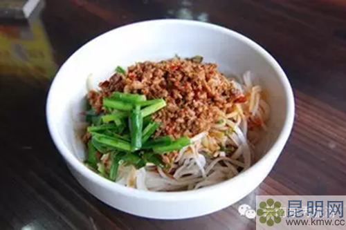6、曲靖蒸餌絲:蒸餌絲制作精細,風味獨特,喜歡吃辣的顧客還可以自行放上油辣子,最后拌勻就可以食用。吃完餌絲,再喝上一小碗撒了蔥花的筒子骨湯,那才叫回味無窮。