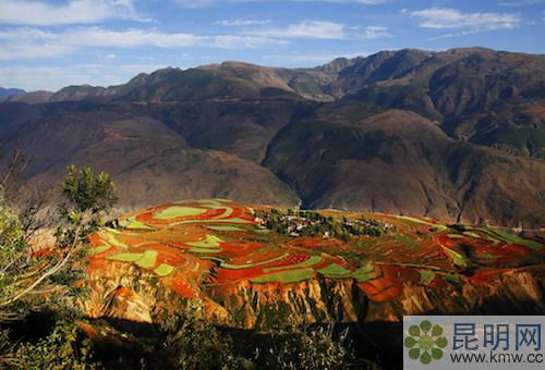 “東川紅土地”位于昆明市以北偏東方向,屬昆明市東川區管轄下的紅土地鎮。從昆明到達景點中心行程約250公里車程,主要景點在海拔1800至2600之間。因云南東川高溫多雨下發育而成的紅色土壤,這種土壤含鐵、鋁成分較多,有機質少,酸性強,土質黏重。這里方圓近百里的區域是云南紅土高原上最集中、最典型、最具特色的紅土地。襯以藍天、白云和那變幻莫測的光線,構成了紅土地壯觀的景色。