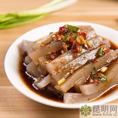 將煮熟的魔芋豆腐切成小條,再加入小米辣、姜、蒜、蔥花等配料,一道開胃爽口的涼拌魔芋就做好了。這種做法保留了魔芋更加原始的風味,入口也更有嚼勁。