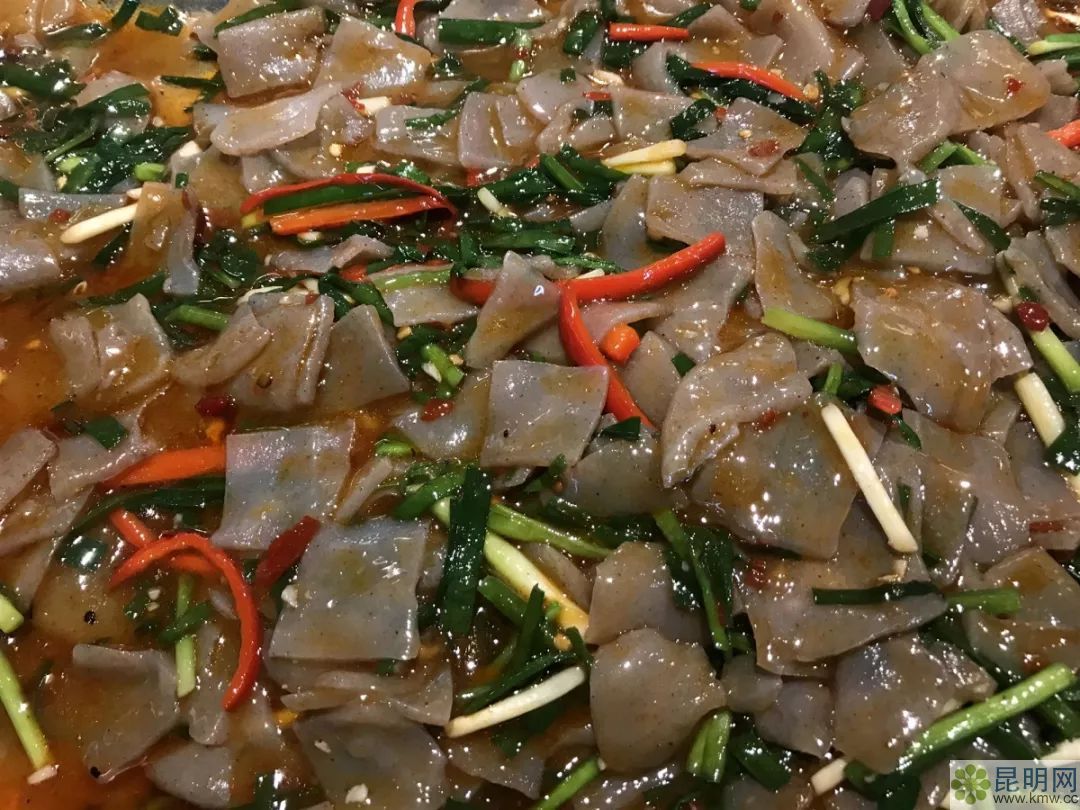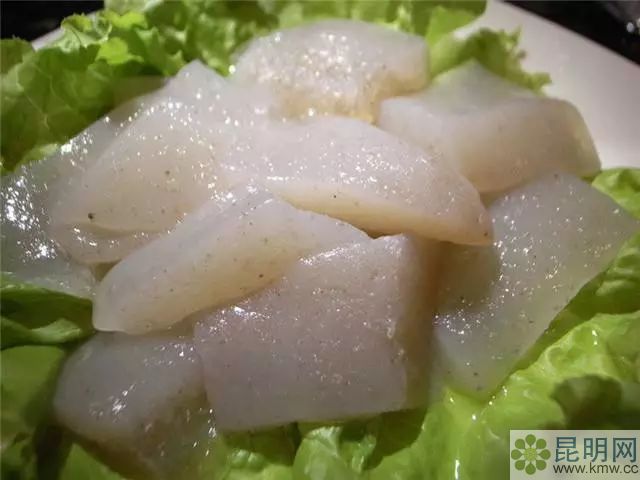 哈尼族人善于加工魔芋片,先把削皮后擦成細末的魔芋泥與灰燼水配兌攪拌,不多時,魔芋便結成板塊,再把結成板塊的魔芋切成片放到鍋里煮熟即可食用。哈尼族人最常食用魔芋的方法是魔芋打蘸水或是涼拌魔芋。