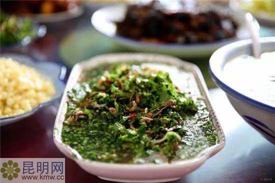 傣家人愛吃“撒撇”,以至吃魚都要做成“魚撒”。將生魚肉剁成肉泥,放上檸檬汁,把剁細的香料韭菜、緬芫荽、香柳、布芽(傣語)、小米辣攪拌在一起,再把涮涮辣在里面一涮,就做成了一碗蘸水,然后再準備一盤用油炸脆的魚骨、萵筍細絲或包白菜細絲,吃時放進到蘸水里蘸一下,味道是酸甜的,好吃極了。